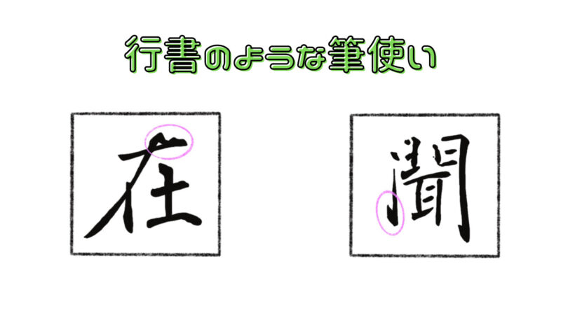 「在」は1画目と2画目があ繋がって行書の書き方になっています。